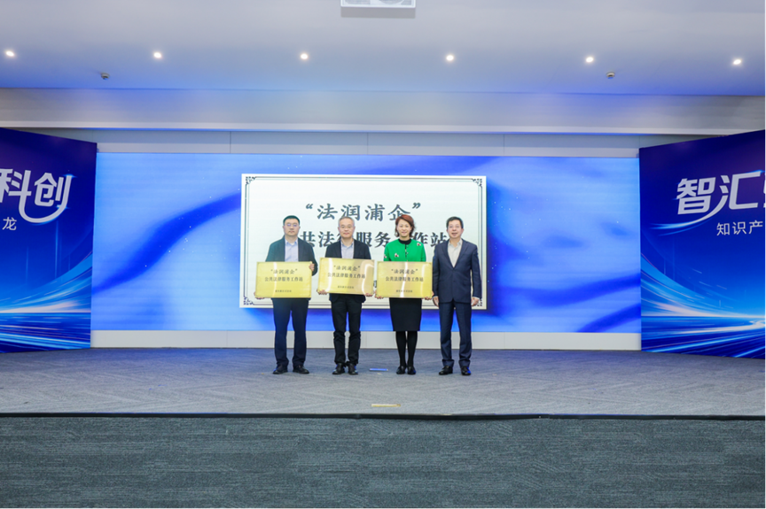 浦东新区司法局党组书记、局长黄爱武为张江集团有限公司、张江高科技园区开发股份有限公司、浦东软件园股份有限公司授牌“法润浦企”公共法律服务工作站,标志着专业的公共法律服务直通园区、贴近企业,让科创企业在家门口就能享受优质、高效的法律服务。
